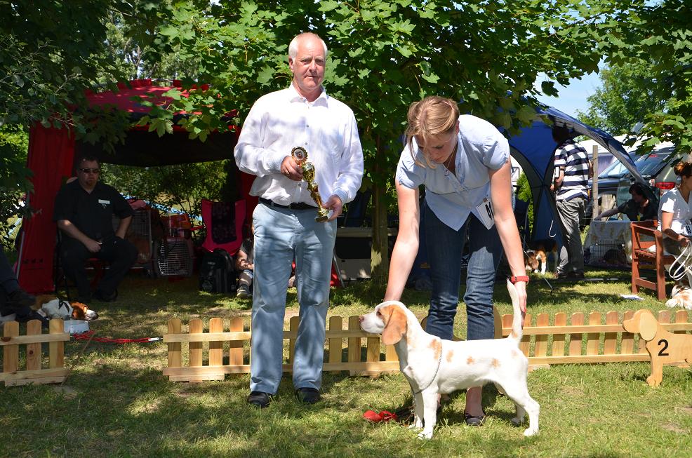 Die Krönung der Saison war für mich persönlich aber Nettle: nach ihrem fehlerlosen 7-erWurf Rüden ( Vater Nedlaw Juniper/ Behrendt ) startete sie im Ausstellungsring durch: 6 x ausgestellt, 6 x V 1 mit VDH-CH-A, 4 x CAC, 3 x CACIB , 3 x BOB, Clubsiegerin 2013, German Winner- damit dürfte sie die erfolgreichste deutsche Hündin sein - auch wenn sie mit “nur” 6 Ausstellungen sicherlich nicht oscarwürdig ist…. Als Clubsiegerin steht sie in der langen traditionsreichen Reihe mit Mutter Zephirine (2007 Mrs.J. Davies ), Oma Titania ( 2003 Mr. P. Walden ) sowie Daphne ( 2011 Mr. Milner ), Beldam ( 1980 Mr. Pagliero ) und Dimple ( 1977 Mrs. M. Spavin ). In diesem Zuge wurde Nettle “nebenbei” auch VDH-Champion.
