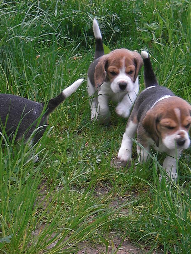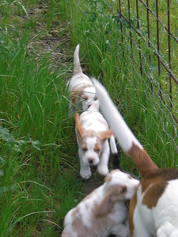 wird erobert! Jeden Tag haben sie ein wenig mehr des “kleinen” Hundegartens erkundet - das sind immerhin auch 200 qm - aber heute morgen wurde das erste Mal der Schritt in den “großen” Hundeauslauf gewagt. Hinter dem großen Kumpel Lawrie hinterher ..