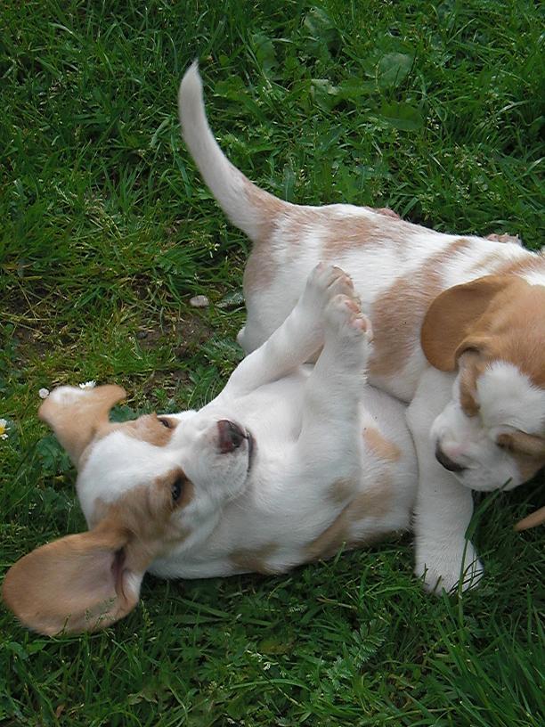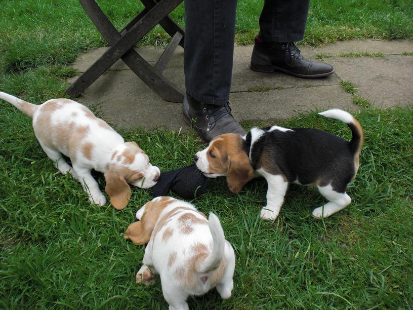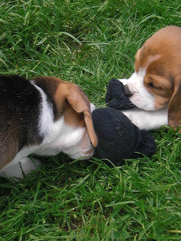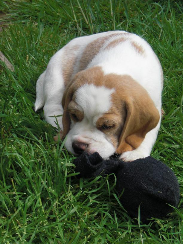 ist ein Mitbringsel und damit besonders willkommen: ein Tennisball in einen alten Spocken eingeknotet !Suffolk (unten), Spencer, Somerset. Es wird mit Begeisterung und großem Gerangel gespielt, gezerrt, geknurrt und gerangelt: