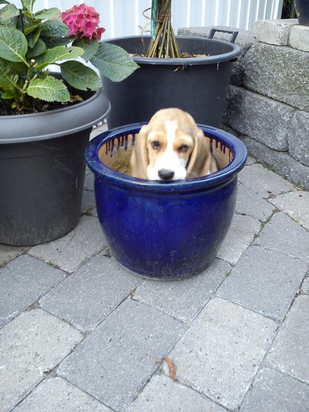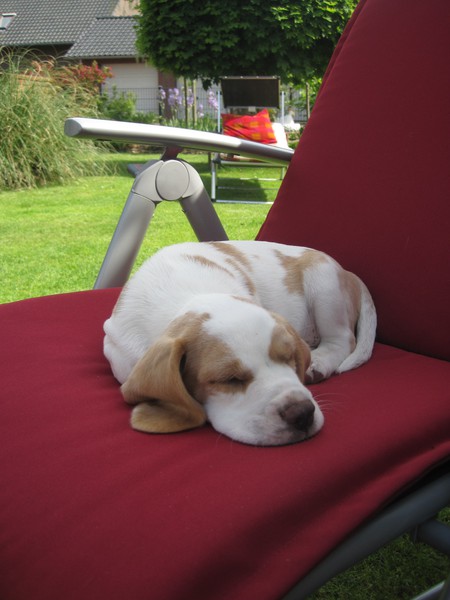 Letzte Nacht waren wir nur um 3 mal kurz im Garten, danach hat er schnell wieder geschlafen… gut für Herrchens und Frauchens Augenringe…Hihihi…