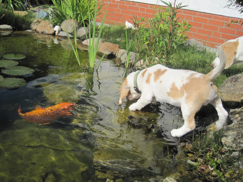 5.6. Seyton: Wir sind wirklich platt… er kann jetzt sicher: Sitz, Platz, Rolle und Pfötchen geben, Schleichen üben wir noch, kann er aber eigentlich auch schon. Einfach toll, dieser Kleine noch nicht mal 11 Wochen alte Welpe…Und seit gestern hebt er sein Beinchen beim Pipi-machen …ungewohnt, wenn man eine ältere Hündin hat…