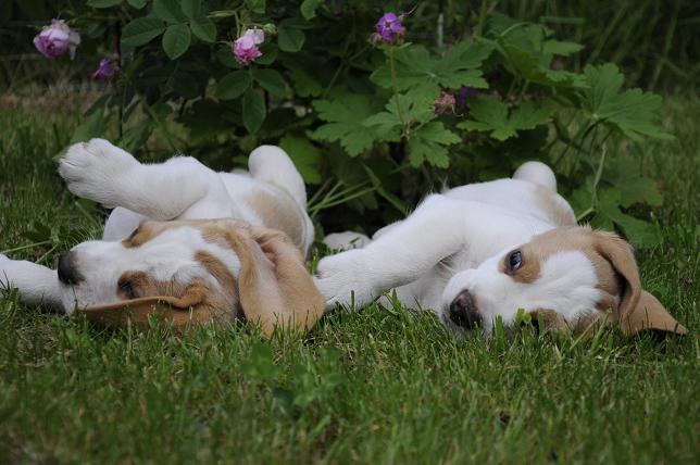 …stimmt nicht, sie sind danach immer noch putzmunter und flitzen durch die Gegend, denn länger als 2 - 3 Minuten wird hier nicht “gearbeitet”, das dann aber konsequent. Nein, die beiden sind einfach zum Umfallen gekrault worden und zum Weitermachen liegen geblieben!