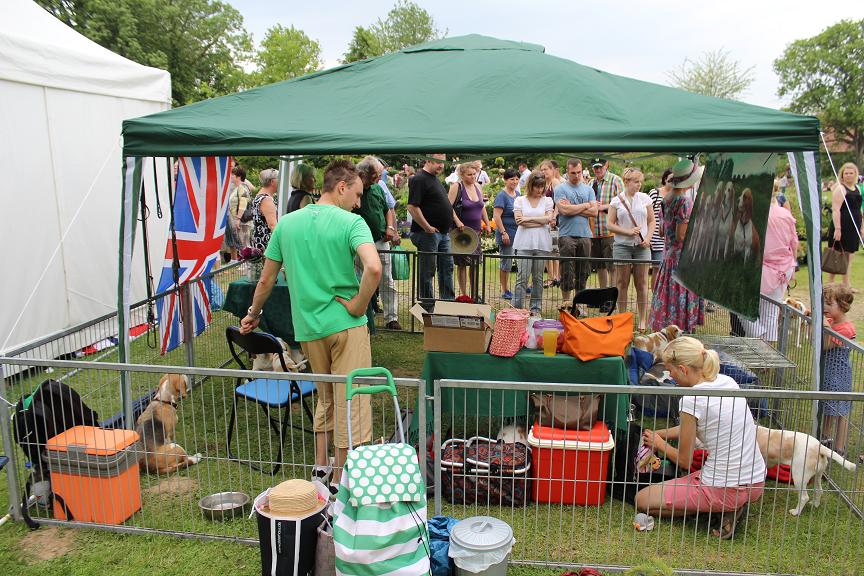 In der Nähe von Stadthagen liegt das idyllische alte Wasserschlößchen und Rittergut Remmeringhausen, auf dem seit gut 1 1/2 Jahrzehnten verschiedene Veranstaktungen stattfinden. Das wunderschöne Gutsgebäude mit den zweckmäßig renovierten Remisen und Scheunen bildet zusammen mit dem weitläufigen und gepflegtem Park mit Wiesen und Teichen die optimale Kulisse für Veranstaltungen im Freien. Jetzt war es das British Weekend, für das das Rittergut seine Pforten öffnete. Und was ist britischer als unsere Hunde ? Also durften auch die Beagles neben den Kerry Blue und Parson Russell Terriern sowie den Retrievern ihr Zelt aufschlagen.