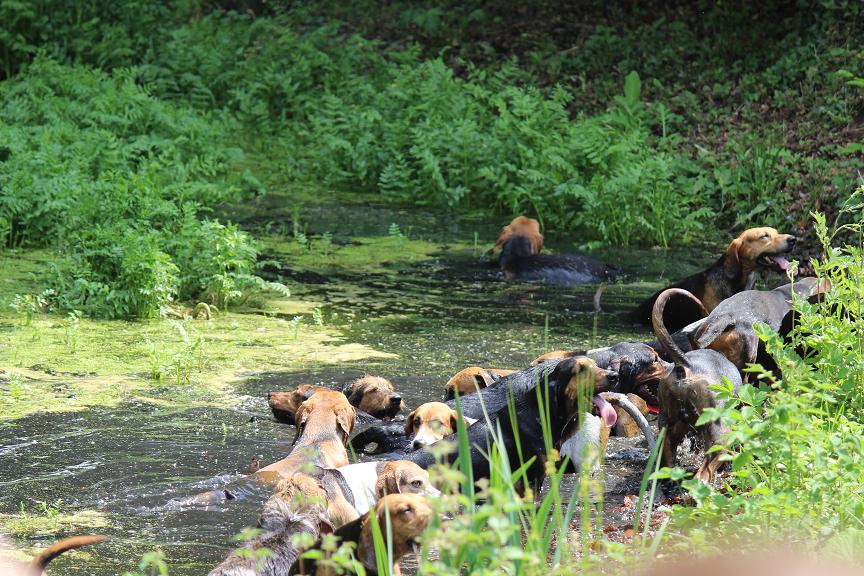 …gemütliches Zeltleben. Unsere großen Vettern, die Harrier der Böhmer Harrier Meute