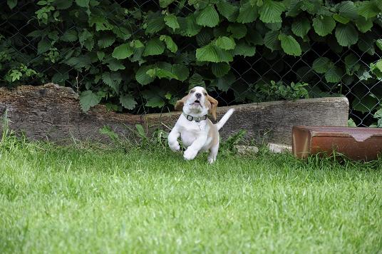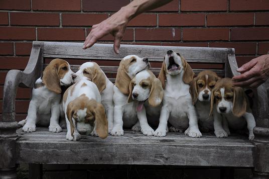 Am Samstag sind die letzten Welpen ausgezogen - Sexton, Suffolk, Spencer -, gestern war die Ausstellung in Berlin und heute morgen stehe ich auf: Stille! 3 Monate lang wurde ich jeden Morgen von einer kleinen Rasselbande begrüßt, jetzt strecken und recken sich nur meine Großen ganz geruhsam und freuen sich auf den Morgenspaziergang. 3 Monate und die letzte Teit der Trächtigkeit bestimmten die Welpen meinen Tagesablauf und brachten “Leben in die Bude”. Und so ist es immer angenehm, wenn die Welpen dann nach 9 Wochen ausziehen, sie haben ja eine Zeit intensivsten Kümmerns hinter sich, in der ihr Leben den Tagesablauf komplett bestimmt und sehr viel hinter ihren Bedürfnissen zurückstehen muß. 5 Welpen sind mit 9 Wochen gegangen, nur die 3 sind geblieben - und die hätten noch länger bleiben können - so unkompliziert, artig, verschmust, entspannt und ruhig waren sie. Natürlich haben sie im Garten lautstark getobt, wurde es zu laut, genügte ein energisches “Ruhe” - und es kehrte Ruhe ein. Mutter Nettle hat mit ihnen gespielt und sie erzogen, sie kannten nicht nur Menschen-Nein, auch das Hunde-Nein. Schon seit langem stubenrein, lernten sie ganz schnell das Komm und das Sitz. Die letzten 3 haben tolle Plätze als Zweit-Beagle gefunden, um ihre Zukunft mache ich mir keine Sorgen ! Aber ich muß ehrlich sagen: ich vermisse Euch, Sexton, Suffolk und Spencer !