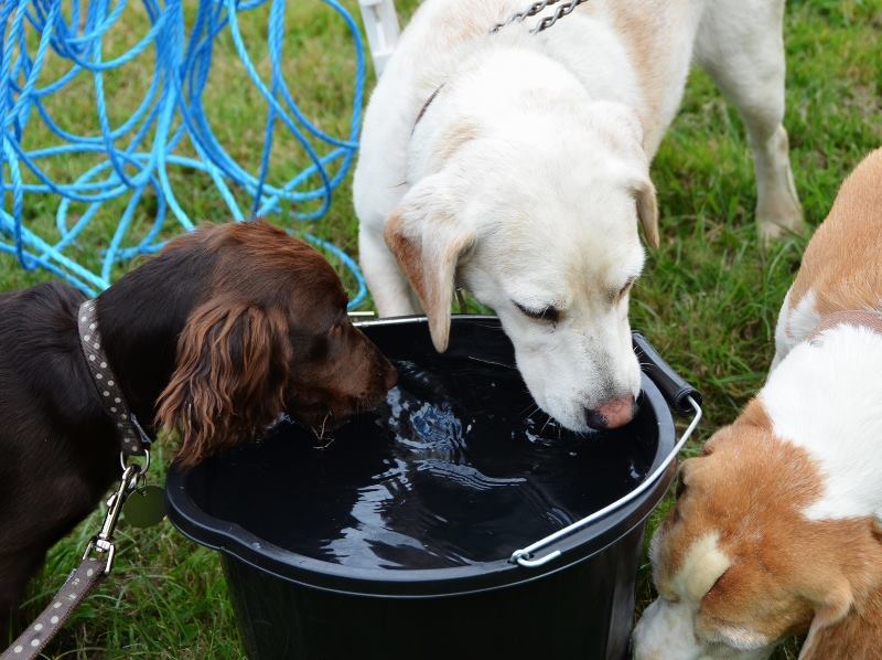 The classes were well attended, and Roger counted about 80 people there, but the field is so big that there was lots of room for everyone. Our cake stall went along nicely, and the raffle table and the bring-and-buy did well too. The agility was held in the other field, and Flo amazed us all. She has never seen jumps and tunnels before, but she did everything at top speed, and was the fastest all day. Next came Rupert, who stopped to lift his leg against one of the jumps, which lost him time!