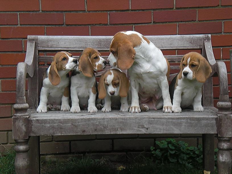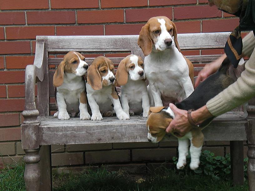 Adieu und Auf Wiedersehen, ihr kleinen Racker - es hat viel Freude gemacht mit Euch Vieren! Ihr wart und seid frohlich und unkompliziert, wart schnell sauber und habt auch schon Einiges gelernt. Heather hat Euch wie immer bestens versorgt, bei Rosie durftet Ihr tagsüber schlafen und Tante Nettle hat Euch im Spiel erzogen, Onkel Lawrie hat Euch Respekt vor den “Erwachsenen” gelehrt- dazu gutes Futter, Wurmkuren, Krallenschneiden, Impfungen, Chipen, Wurfabnahme ( Zähne, Hoden, Rute alles Tiptop - nur 1 Mini-Nabelbruch ), angereichert mit einer großen Portion Menschenliebe: ein guter Start in ein hoffentlich sehr langes Hundeleben!