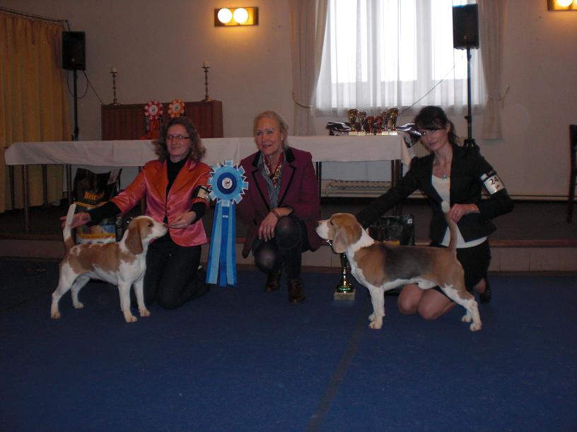 Wieder einmal vom tschechischen Beagle Club zum Richten eingeladen, stellten sich 74 Beagle zur Beurteilung. Der Ring war groß und hervorragend mit klubeigenem Teppichboden ausgelegt, sodaß alle Beagle die Chance hatten, ihre Bewegungsqualität zur Geltung zu bringen. Das Team im Ring war sehr kompetent und freundlich - ganz herzlichen Dank vor allem für das tolle Schreiben! Die Qualität der Hündinnen war deutlich besser was Typ und Bewegung betraf. Besonders gutr gefallen haben mir die beiden Puppies/ Babies: Check Point Csuki Kopo ( ungarische Nachzucht), Bes. E. Cenkova und das entzückende Beaglemädchen Sopwith Camel’s Warm Welcome aus Dänemark., Bes. J. Smejkalova. Bei den Jugendklassen stand ein Geschwisterpaar aus dem Zwinger Tergyan, Cream Cupcake und Cake with Chilli (Z.u.Bes. Krejzkova) - beide tan/white - wobei die Hündin deutlich gereifter war und dann auch nicht nur Beste Hündin wurde sondern auch das BOB gewinnen konnte.. Bester Rüde wurde - auch wenn ich ungern beide Gewinne in den gleichen “Stall” gebe, der auch in Deutschland schon erfolgreiche blaue Rüde Applause for the Best Tergyan.