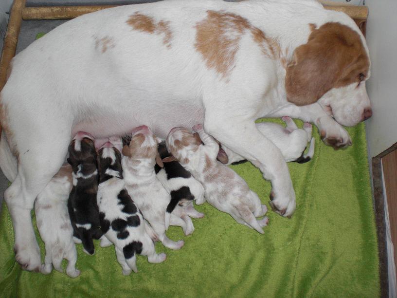 Am 14. März hat Nedlaw Rosie 7 gesunde und vitale Welpen zur Welt gebracht - mal eben innerhalb von 3 Stunden, ganz gelassen und entspannt! Unsere kleine Rosie ist wirklich zu einer tollen Mutter/Hündin herangereift. Nicht umsonst stammt sie aus bestem englische Hause und hat bei den anderen Hundemüttern auch schon fleißig zugeschaut und geholfen. Und wie groß war die Freude, als ein bunter Welpe nach dem anderen das Licht der Welpenbox “erblickte” - das hatten wir uns so sehr gewünscht! Und Papa Interim’s Sir Brady Branham ( Bes. Niemann ) kann Stolz sein!