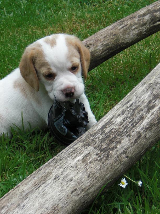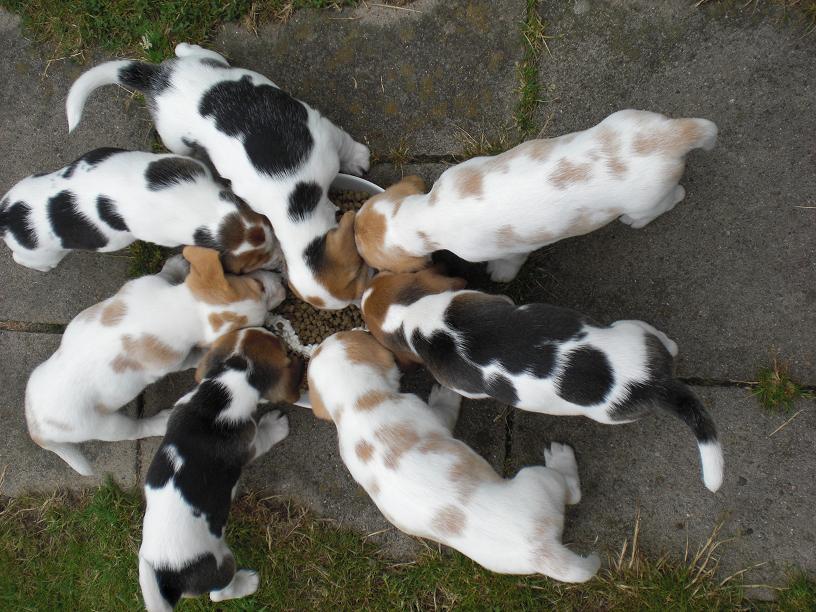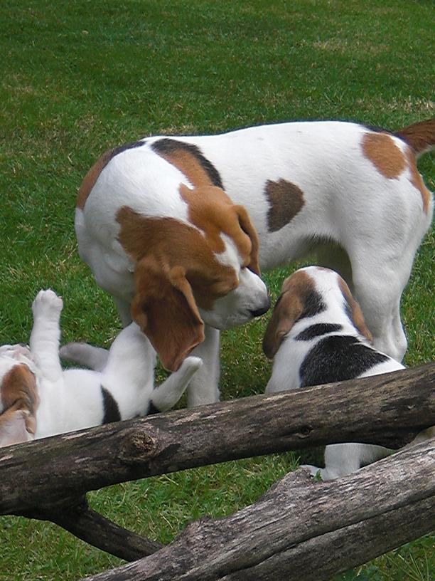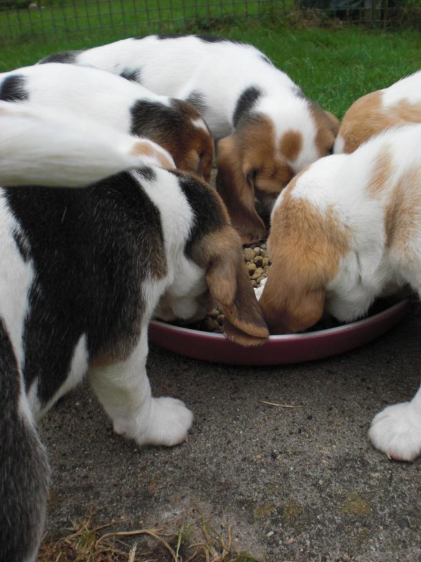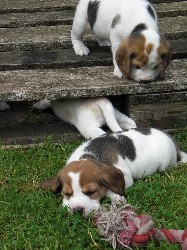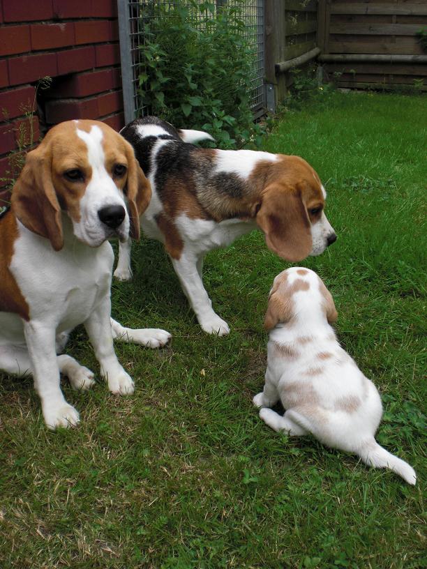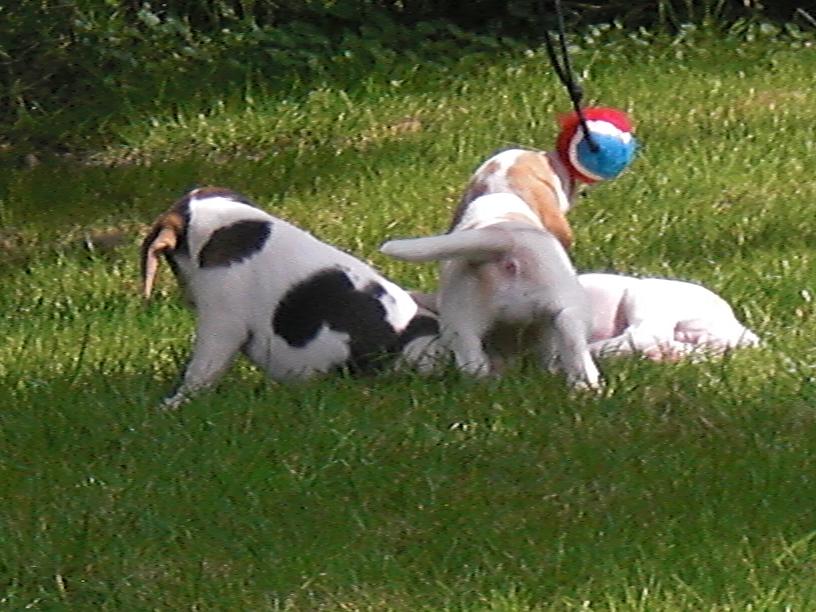 7.6…im Leben der Hundekinder hat angefangen: der Umzug in die Küche und damit rein und raus in den Hundeauslauf, wie das Welpenherz es begehrt ! Und der Garten wird schnell erobert und erspielt und auch mit den Piis und den Puhs klappt es schon ganz prima, ich muß nur ein Auge auf die Rasselbande haben.