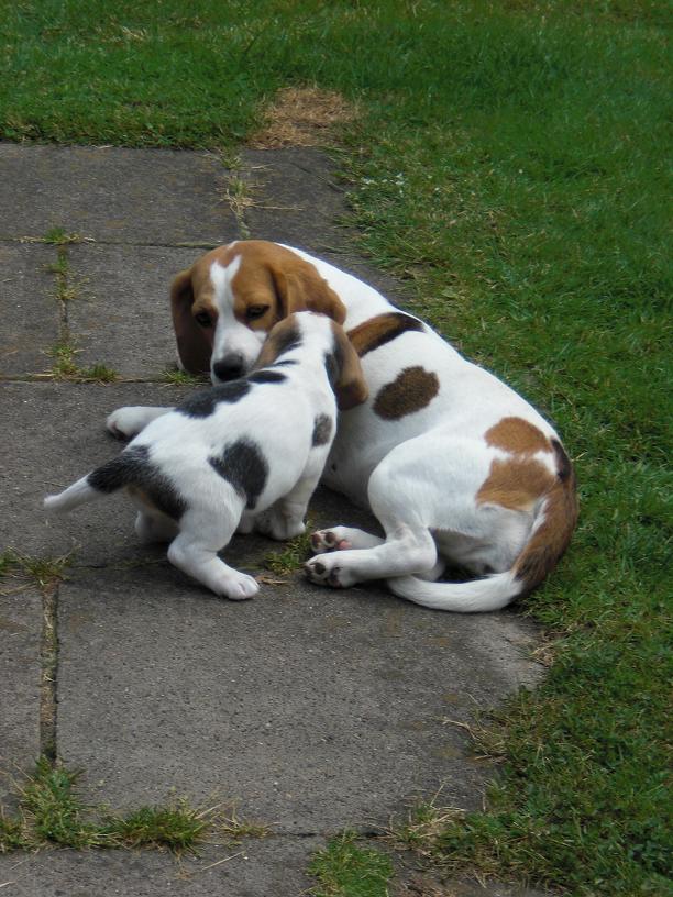 15.06.2016: endlich ist das Wetter gut genug für Fototermine! Nicht, daß die Welpen nicht auch bei schlechtem Wetter raus könnten und auch raus gingen, aber Fotos sind einfach bei Sonne schöner. Tilly tobt mit ihren kleinen “Geschwistern”, Oma Heather beobschtet alles aus sicherem Abstand Und dann haben die Welpen natürlich wieder einen großen Entwicklungssprung gemacht und es ist einfach schön, ihnen beim Spielen, Kuscheln fressen usw. zu zu schauen