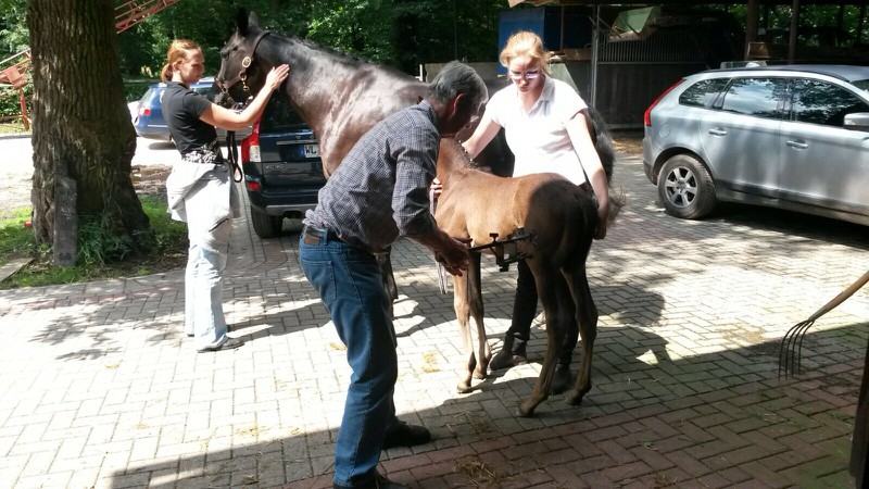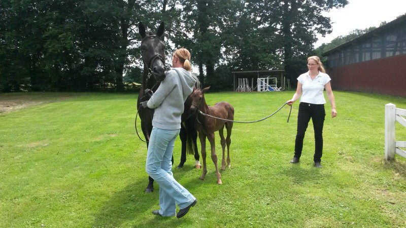 Freilaufen in der großen Halle ( Mama glänzt wie Speckschwarte )… das Brennen der doppelten Elchschaufel auf dem linken Hinterschenkel…