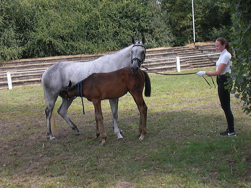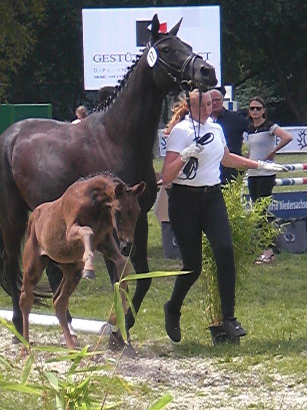 24.07.2016 Wenn man schon 2 Prämienfohlen hat und das Trakehner Bundesturnier quasi vor der Haustür im Reiterstadion in Hannover stattfindet und noch dazu so 2 tolle und gute Helfer wie Lea und Yara ( vielen Dank noch mal an Euch beide ! ) - dann werden Stuten und Fohlies natürlich “gehübscht”, aufgeladen( 2 Autos zum Ziehen, 2 Pferdehänger - etwas mehr Aufwand als mit unseren handlichen Beagles…) und zum Championat gefahren! Unsere gute Holle ( Insterschnee) mit ihrem Duke of Hearts xx Fohlen kam zwar nicht auf denm Endring, aber ” Dotty”/ Insterdame wurde von den Richtern hoch gelobt und auf jedem Fall ein Wiedersehen unter dem Sattel in 3 Jahren erhofft. Unsere Herzenssieger an diesem Tag waren die beiden, so gelassen und entspannt haben sie alles mitgemacht.