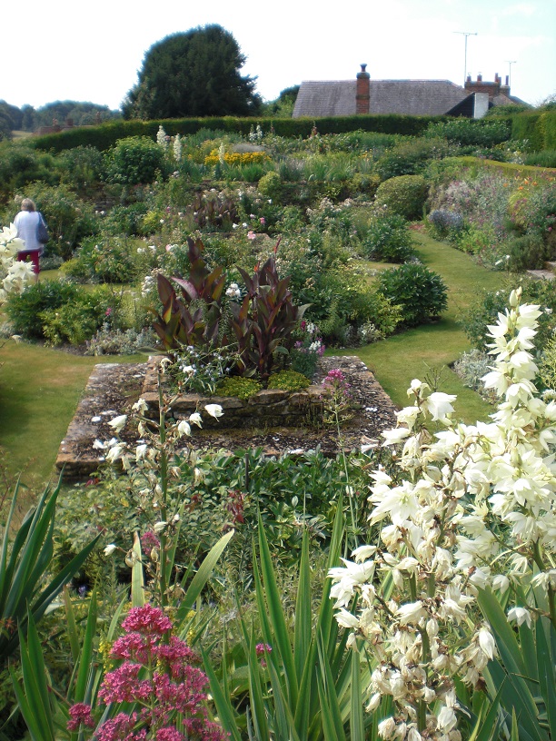 und von den heutigen Besitzern liebevoll restauriert. Das Arreal umfasst knapp 5 Acres ( knapp 20 000 m2 !), auch wenn nur geschätzt 1/2 die “Blumengartenfläche! ausmacht, sind das doch für uns unvorstellbare Ausmaße. Dazu kommt dann der “wilde” Garten, der Obstgarten, der Gemüsegarten, der Tennisplatz… Für uns natürlich die berühmten Beete - kunstvoll bepflanzt, immer blüht etwas in ausgeklügeltem Farbschema. Der Parkplatz vor dem Haus war komplett besetzt, deshalb führte uns der Weg über einen alten Friedhof mitsamt alter Kirche
