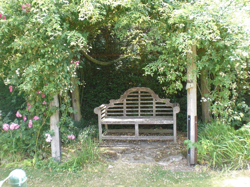 und die berühmte Lutyens Bank unter Ramblerrosen