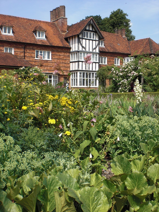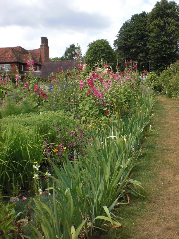 eine einzige Blütenpracht, sicher viele interessante Vorträge der RHS u.ä., aber wenig Gärtnereien mit Pflanzenneuheiten - zumindest haben wir sie nicht entdeckt - sonst mehr Drum und Dran und Trinken und Essen. Mit einer Gärtnerei ging es am Montag los, gut gepflegt mit einer großen Auswahl - sehr schön. Dann stand der erste Privatgarten auf dem Programm: ein Garten, im Jahr 1908 von Gertrude Jekyll rund um ein Gebäude, ursprünglich aus dem 15.Jahrht. angelegt