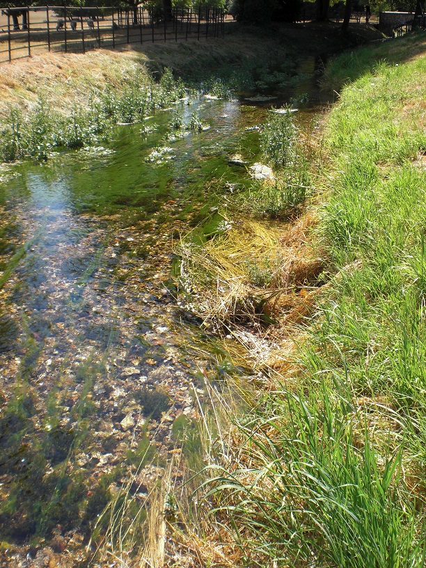 . Hinter der Mauer ein Gemüse- und Obstgarten sowie ein Gewächshaus - alles in Reih und Glied, aber aufgelockert durch Clematis, Rosen und Beeten mit dem blühenden Nachwuchs für den Herbst und das kommende Jahr. Dahinter noch mal die gleiche Fläche mit Obstbäumen und geplantem Wildwuchs für Insekten, Kleintiere und Bienenvölker. Vom Haus hoch zieht sich auf der anderen Seite ein lichter Waldsaum und hier erinnern verwitterte Grabsteine an Generationen von geliebten Haustieren. Weiter ging es Richtung Canterbury und Fähre - nicht ohne im West Dean Garden ausführlich zu bummeln und zu staunen. Ein riesiger Landschaftspark mit Schafherde auf der gegenüberliegenden Hügelkette - nicht satt grün, wie man die Insel sonst kennt, sondern trocken braun. Im Talgrund ein kristallklares Bächlein, das auch als “Schafzaun” dient, um die Mäuler
