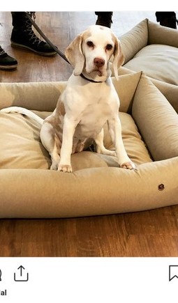 Während wir dieses begutachteten, die richtige Farbkombination auswählten und einen passenden Namensanhänger designten, ging Lilly selbst auf Tour und interessierte sich deutlich für die ausgestellten Hundekörbchen. Eines davon hatte ihr besonderes Intersse geweckt - und sie setzte sich kurzerhand mitten hinein. Das wiederum gefiel der Besitzerin des Ladens so gut, dass sie nicht mit Leckerlis geizte, ( na ja, ein schlagenderes Verkaufsargument gab es ja wohl kaum… ) die thronende Lilly fotografierte und bei Instagram veröffentlichte.