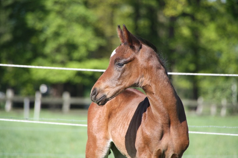 Bei trockenem Wetter darf er mit Mama Frau Holle auch ins grüne Gras, dabei hat er sich schon schön “entfaltet”. Groß, mit guten Gelenken dabei chic, charmant und menschenbezogen - ein kleiner Herzensbrecher!